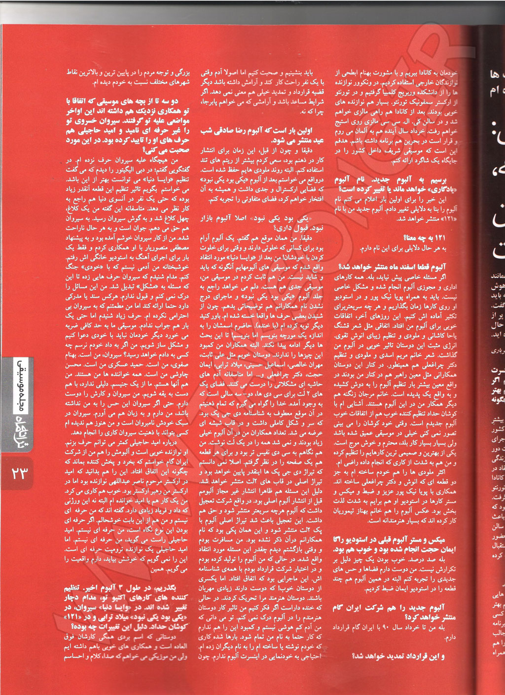 | کدام اهنگ رضا صادقی را بیشتر می پسندید؟ |